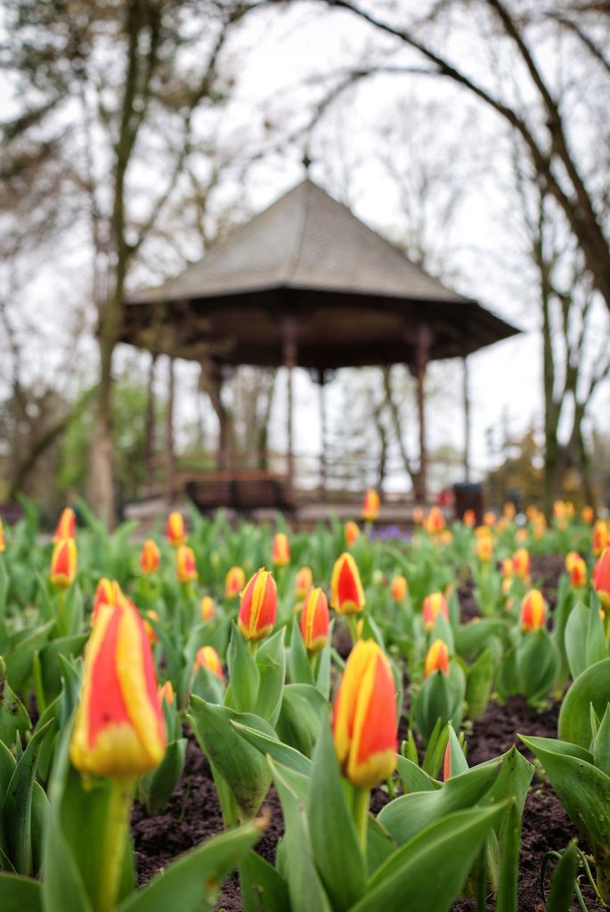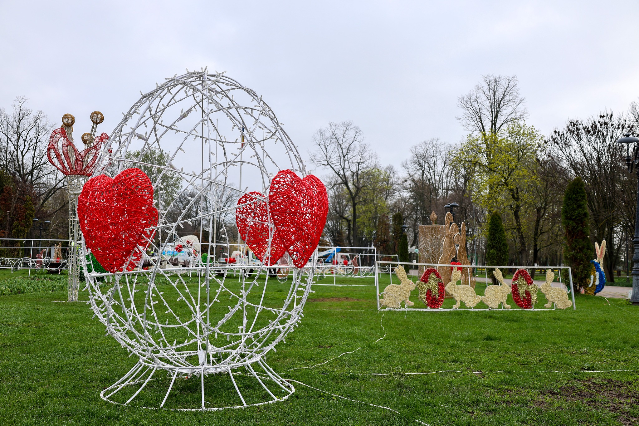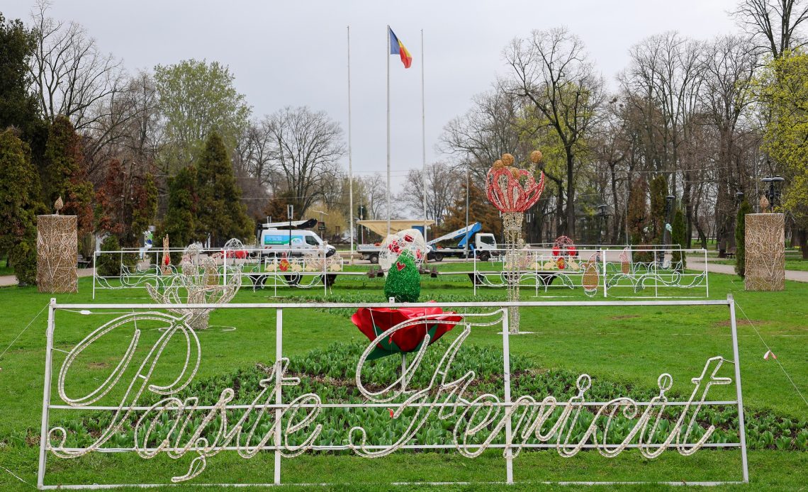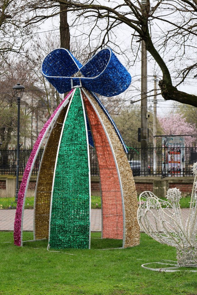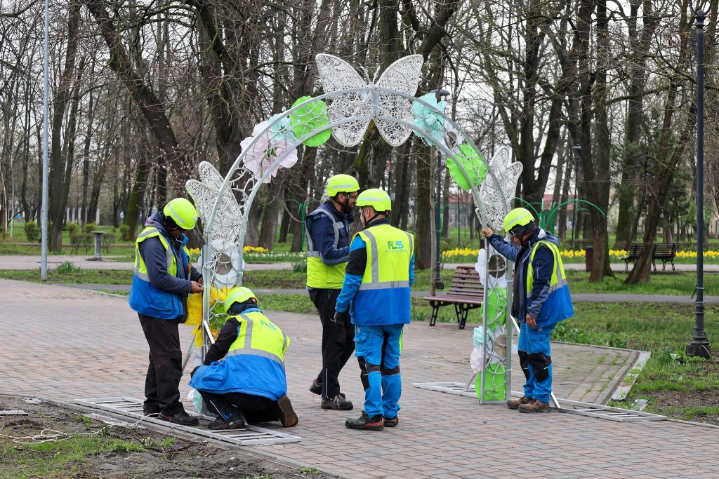 Grădina Publică din Galați, pregătită pentru Florii și Paști. Sâmbătă seara se aprind decorațiunile
